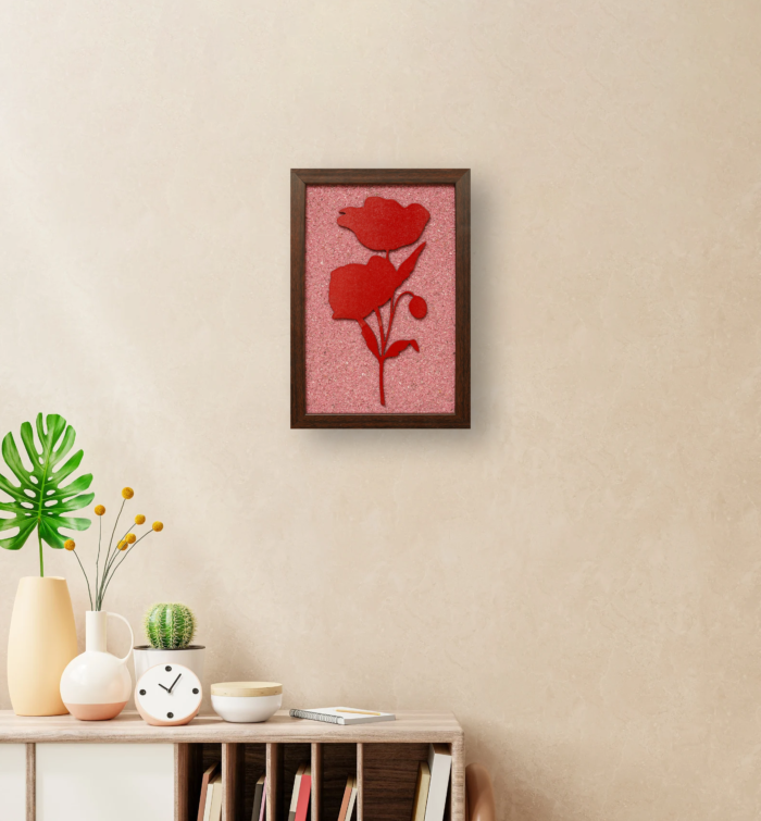 The Flower Wall Painting is more than just a decorative piece; it’s a vivid expression of nature’s beauty and the emotions it evokes. With a soft pink background that radiates charm and subtle elegance, this painting sets a warm and inviting tone in any room. The bold red flower in the foreground brings a burst of passion and vitality, creating a striking contrast that immediately catches the eye and energizes the space. This thoughtful blend of colors doesn’t just enhance the room—it transforms it, making the environment feel more alive and engaging. Framed in a natural brown frame, the piece maintains a perfect balance between sophistication and warmth, adding a timeless touch to any wall it graces.